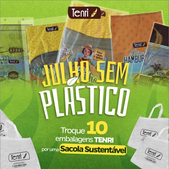 Troque 10 embalagens plásticas dos produtos Tenri por uma Sacola Sustentável!! Você sabia que Julho é o mês dedicado à redução do uso de plástico, em especial os descartáveis de uso único?